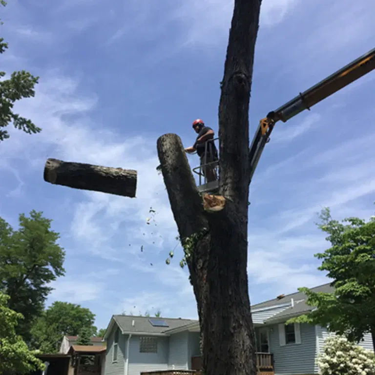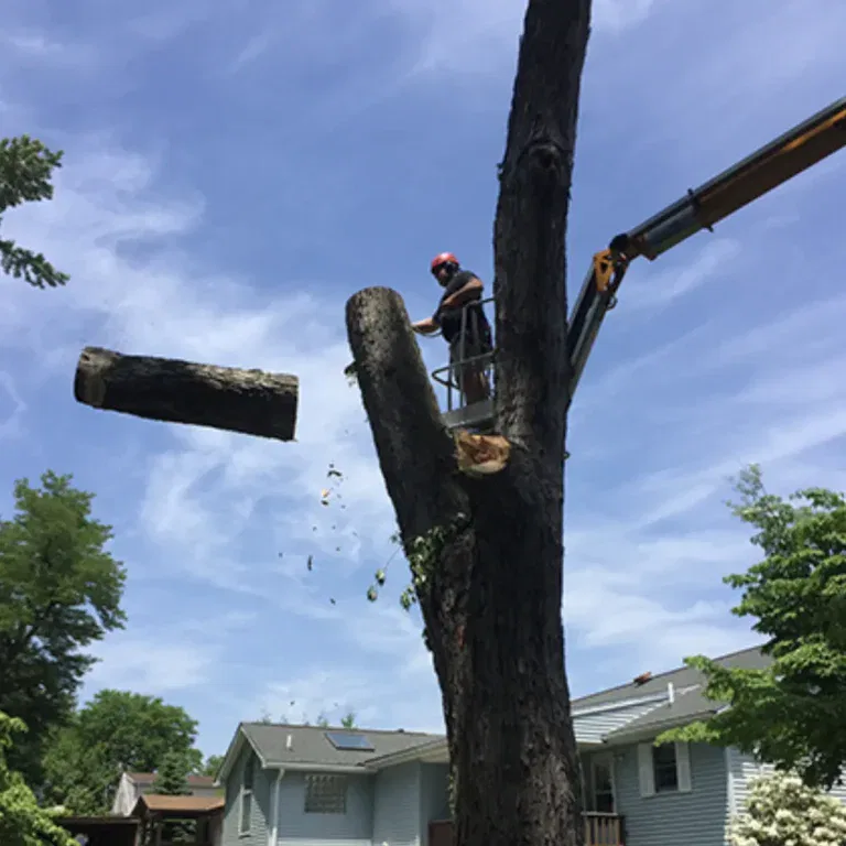 Top Notch Tree Care performs safe, controlled removals for hazardous, dead, declining, or unwanted trees. The team uses specialized equipment, including the county’s only grapple saw crane, which allows for fast dismantling with minimal ground disturbance. Crane-assisted service is ideal for tight yards, steep terrain, or jobs near structures.